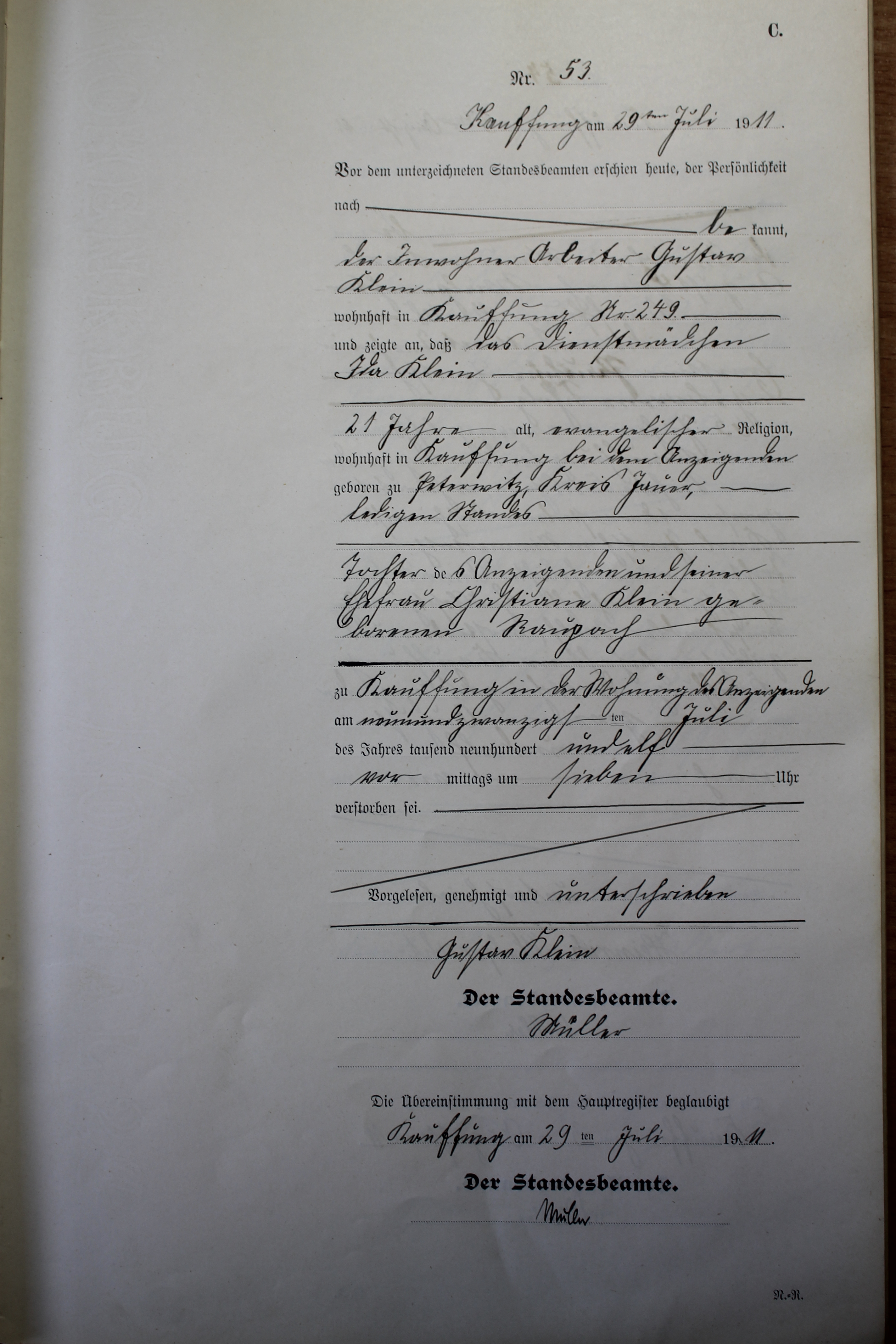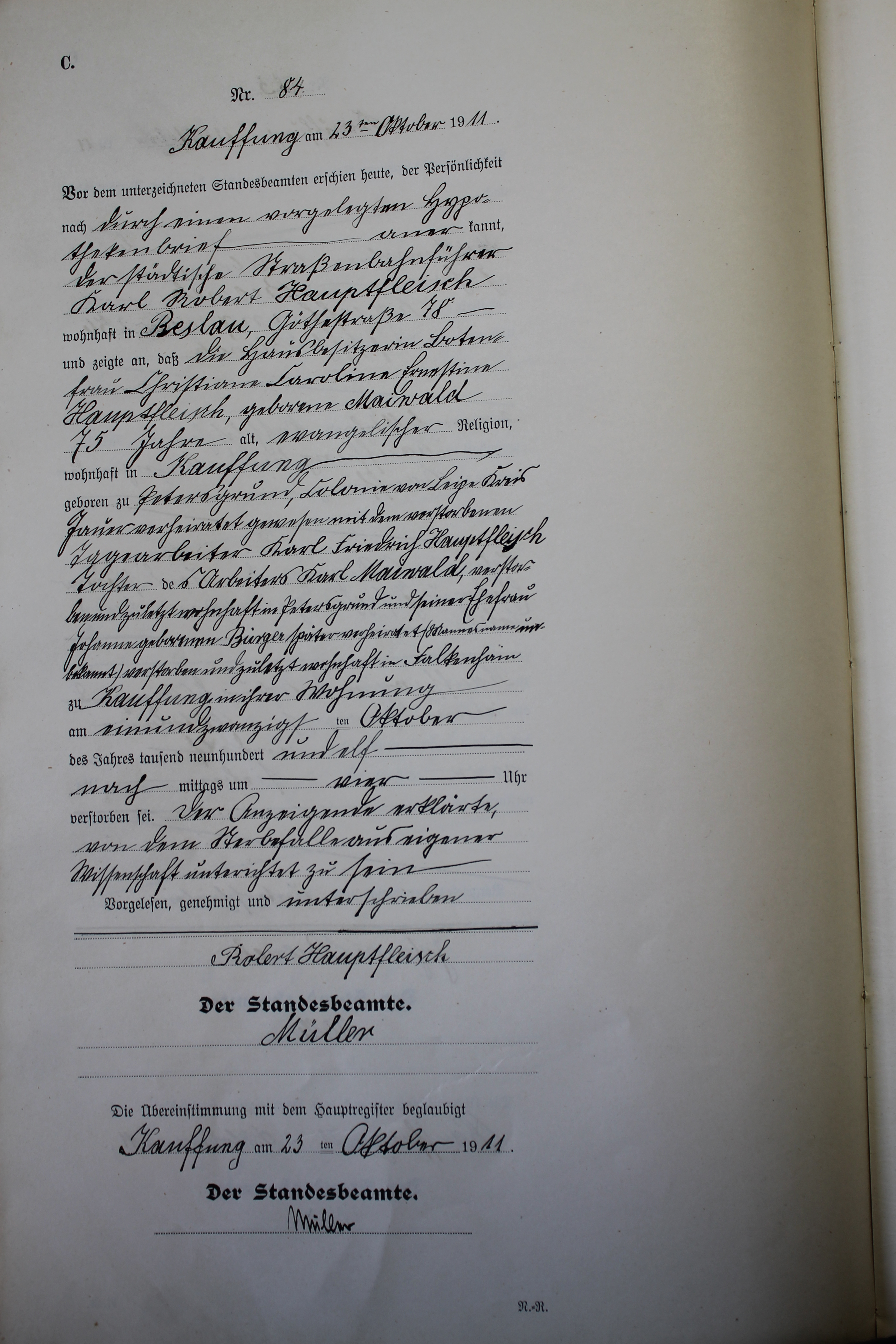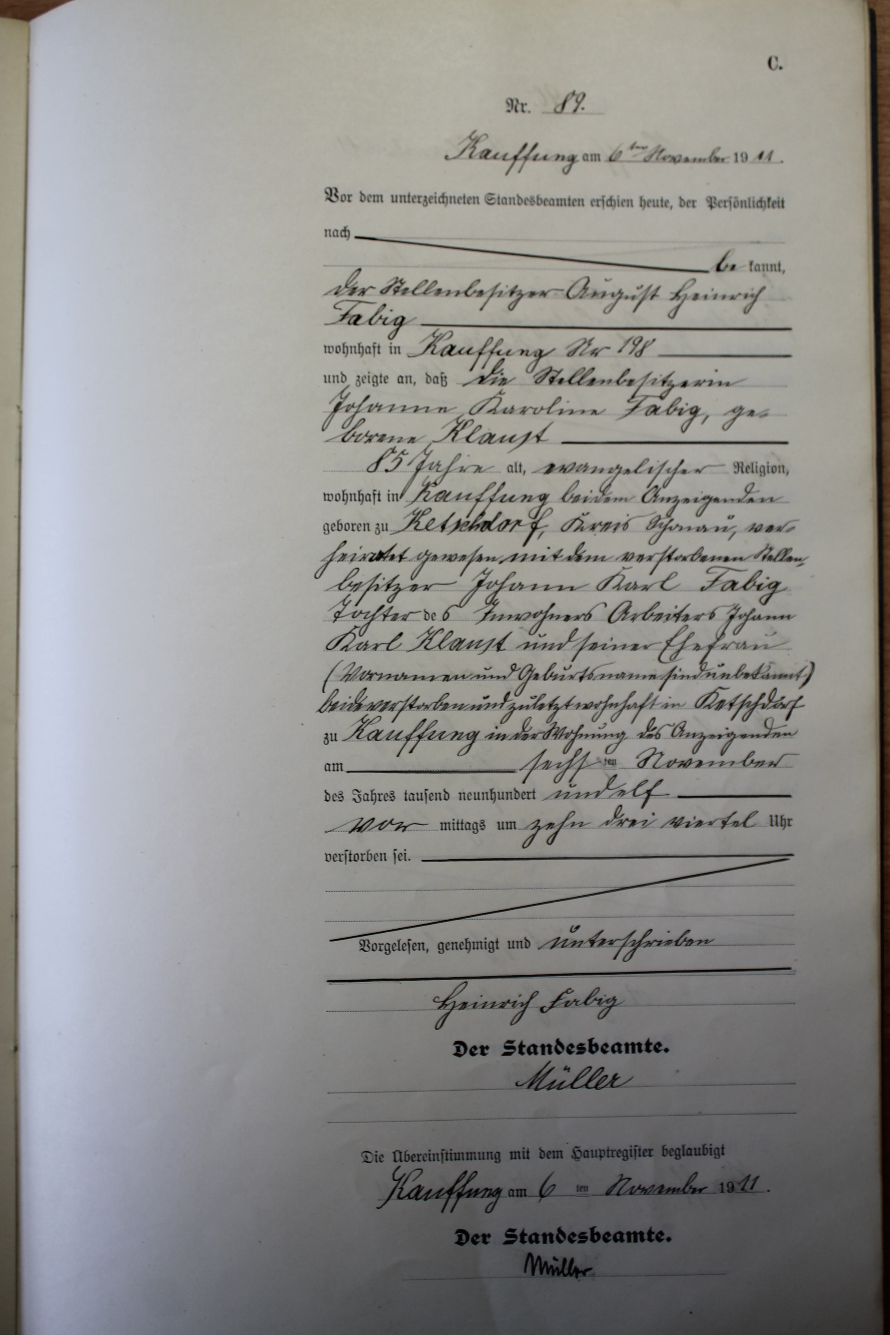 Index of /Kauffung/Standesamt/Sterberegister/Sterberegister 1911