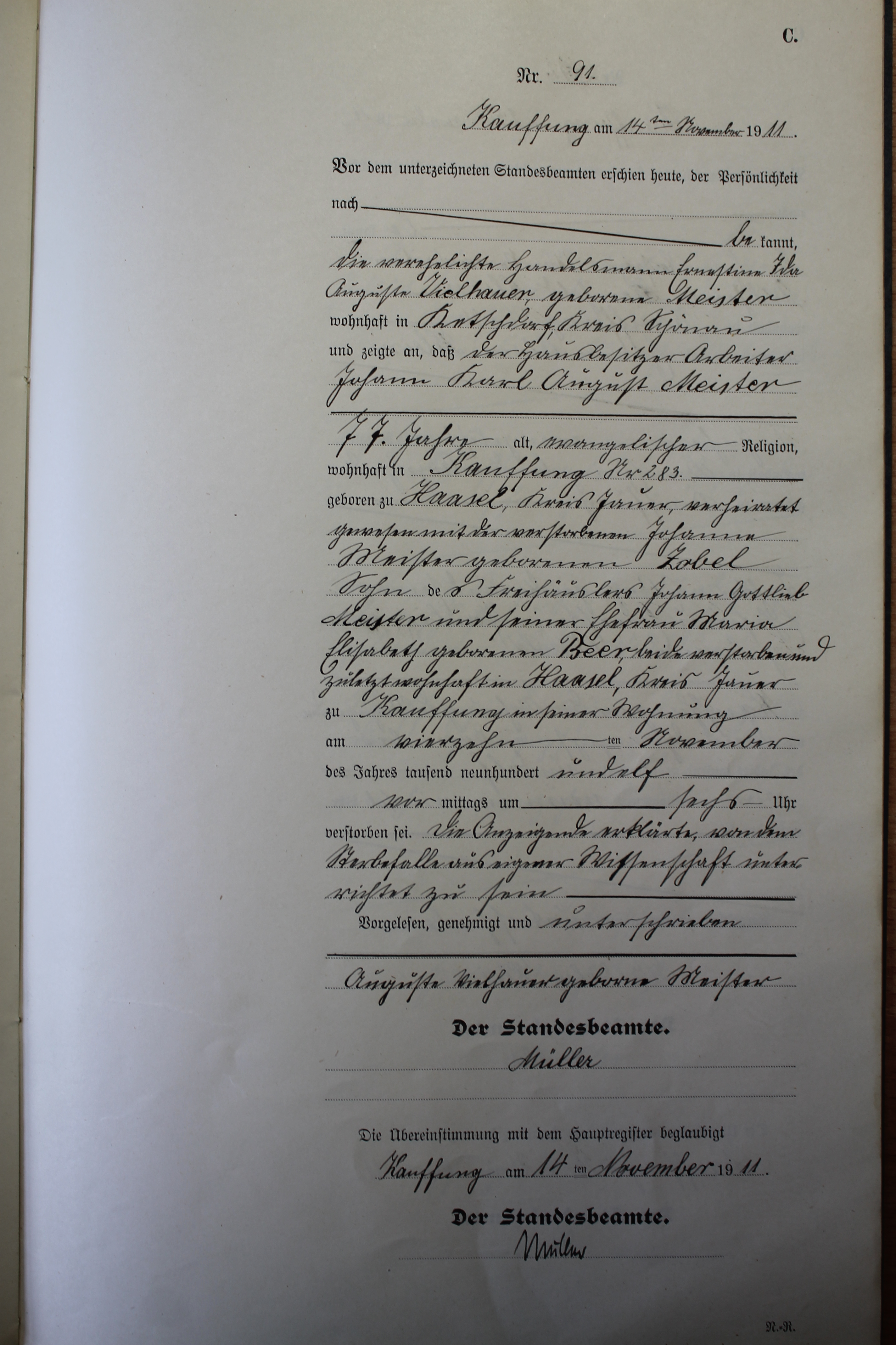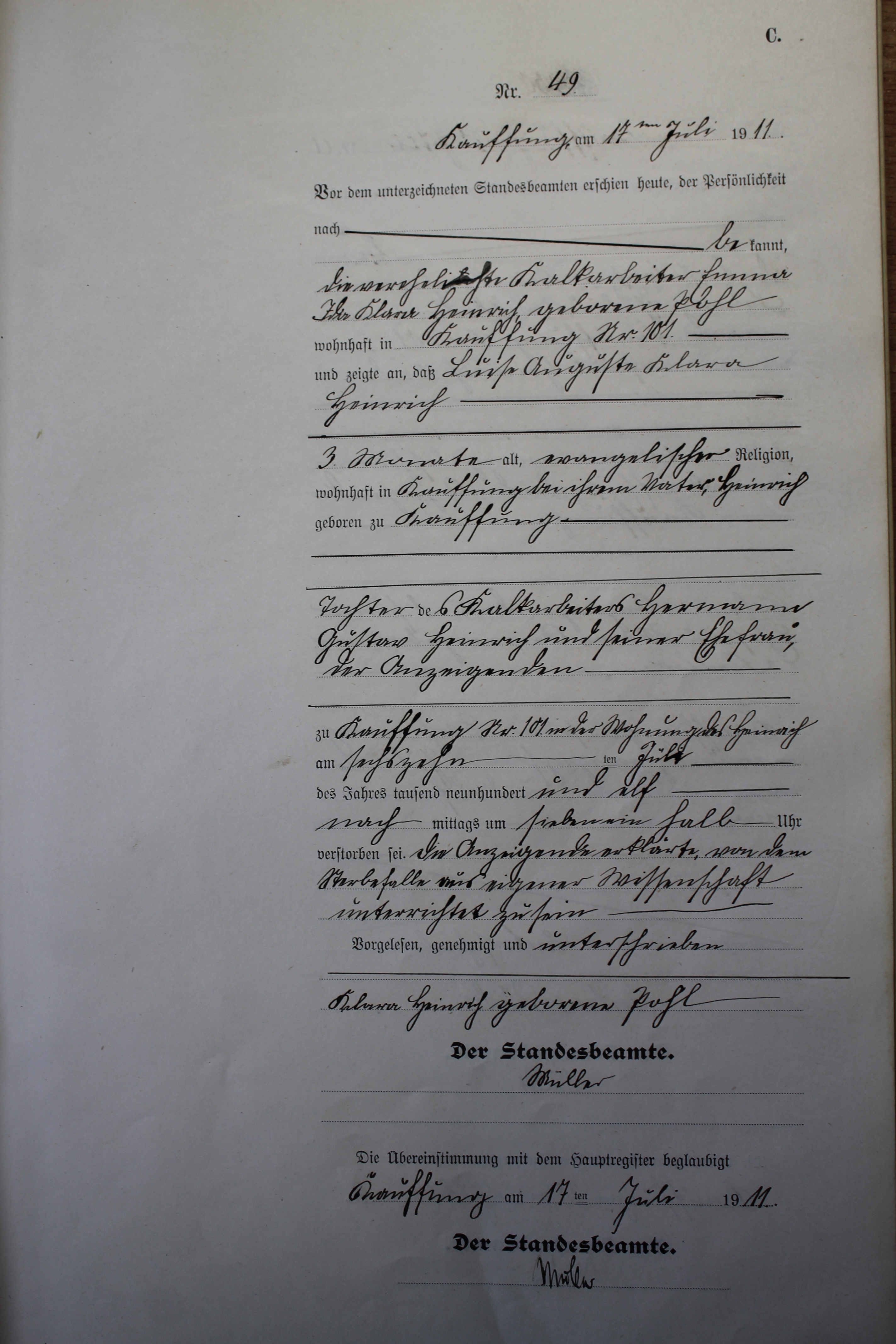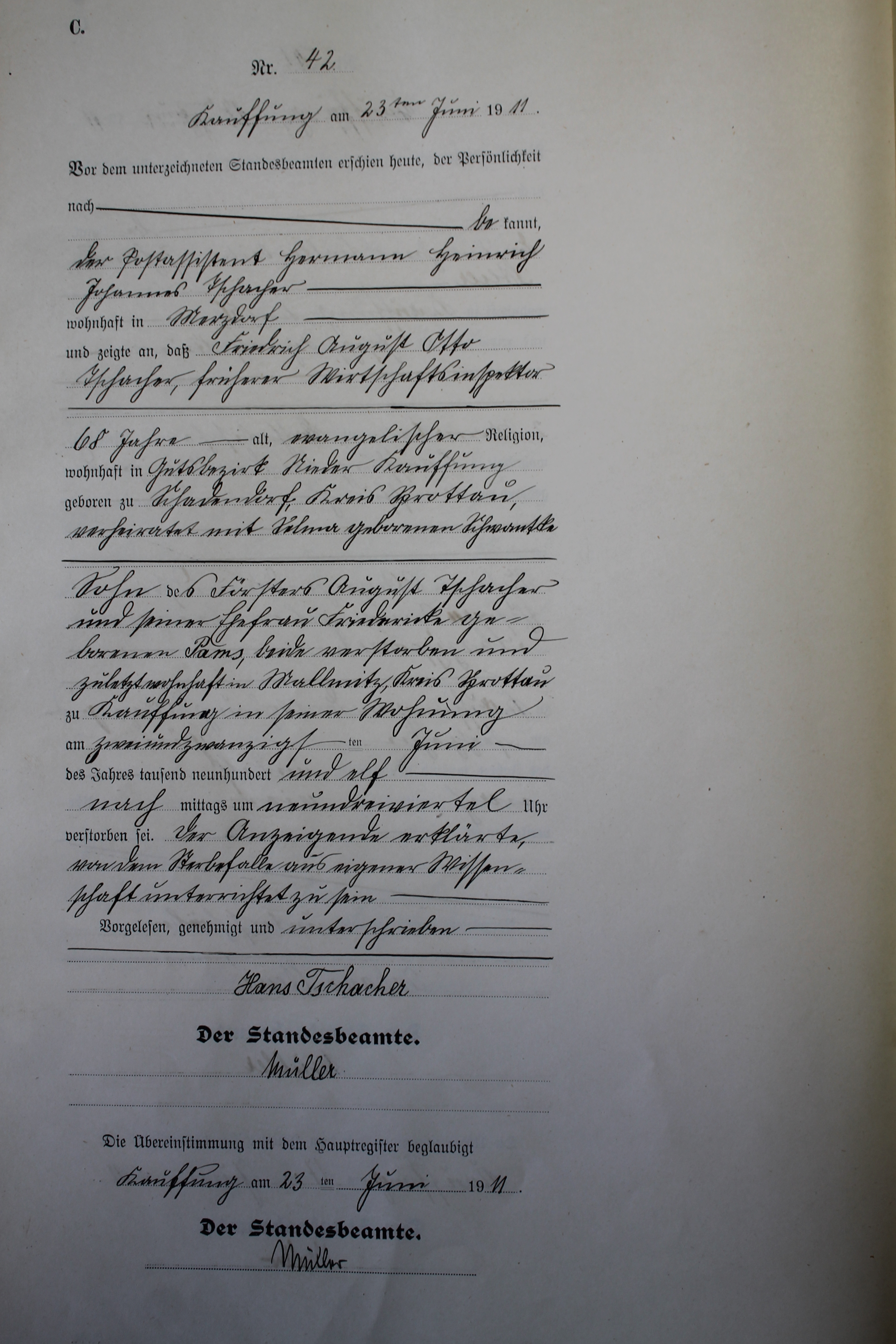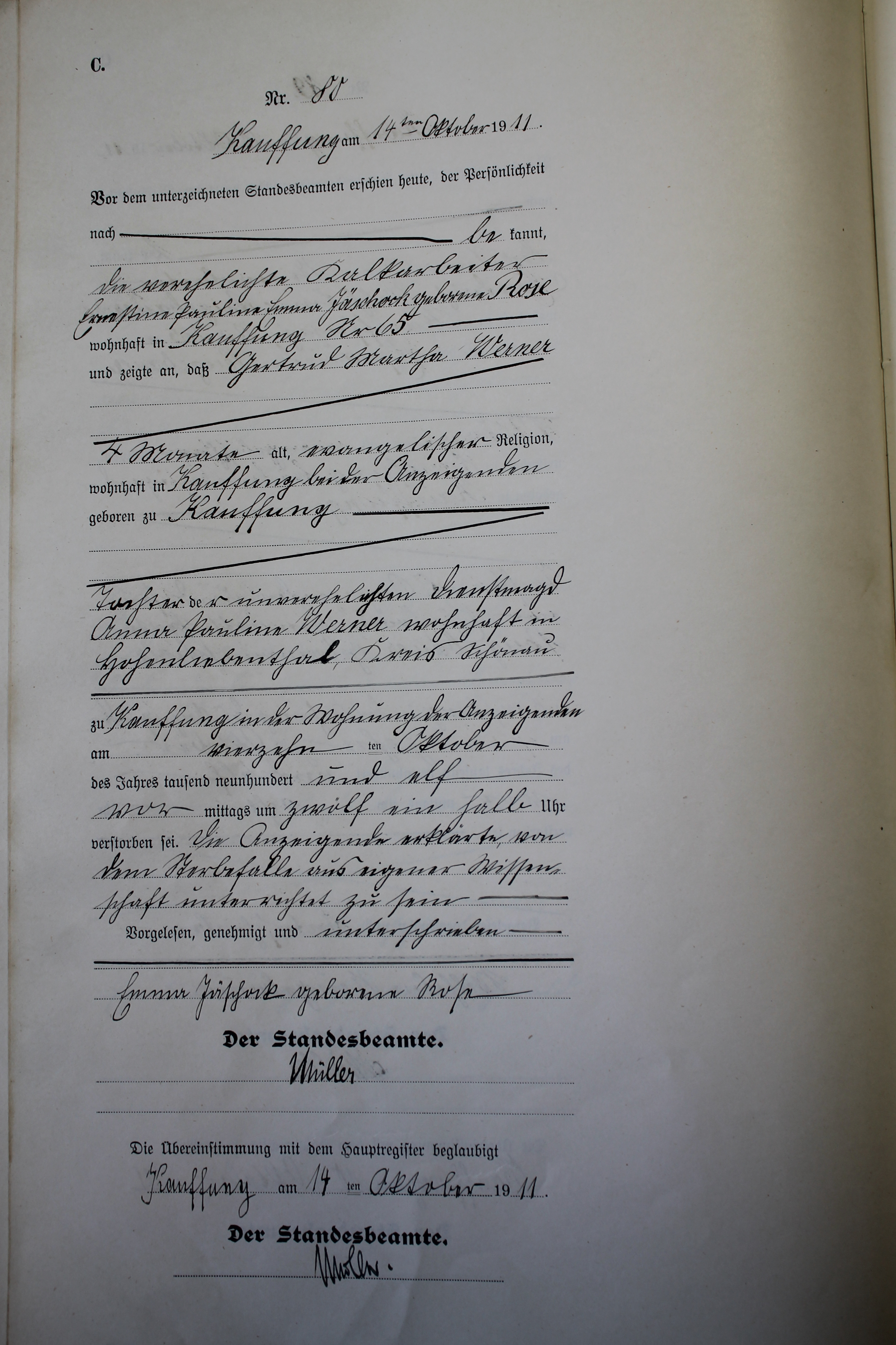 Index of /Kauffung/Standesamt/Sterberegister/Sterberegister 1911